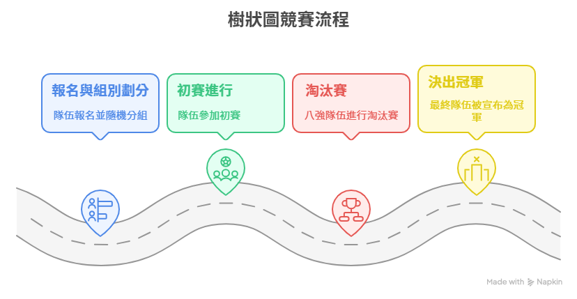 - ■ 初賽:114年10月25日(星期六)16:30至18:00在 B 廳舉行。由報名成功的隊伍中隨機抽出八組對戰組合,進行晉級賽。